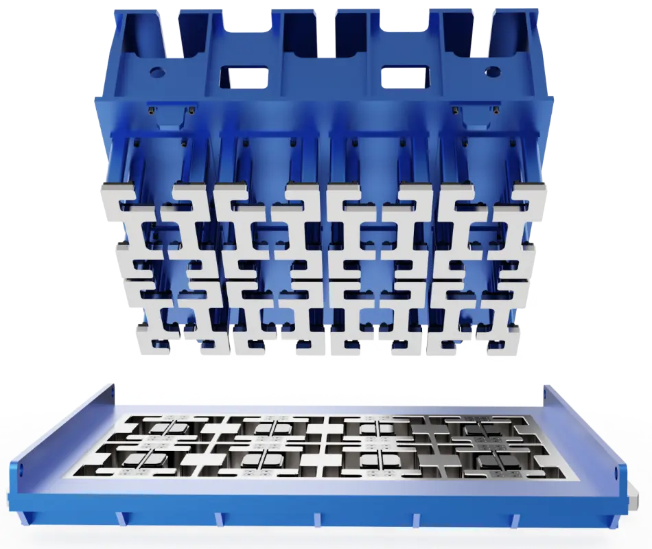 அதிக உடைகள் மற்றும் அதிக அதிர்வெண் கொண்ட அதிர்வு சூழல்களை நிவர்த்தி செய்து, Quangong Machinery Co., Ltd. தொடர்ந்து அச்சு மேற்பரப்பை வலுப்படுத்தும் செயல்முறைகளை மேம்படுத்துகிறது. மேற்பரப்பு தணித்தல், உடைகள்-எதிர்ப்பு அடுக்குகளின் துல்லியமான வெல்டிங் மற்றும் மேற்பரப்பு கடினப்படுத்துதல் சிகிச்சை ஆகியவற்றின் மூலம், அச்சு வேலை செய்யும் மேற்பரப்பின் கடினத்தன்மை மற்றும் உடைகள் எதிர்ப்பை மேம்படுத்த பல தொழில்நுட்ப வழிமுறைகள் பயன்படுத்தப்படுகின்றன. பல அடுக்கு கட்டமைப்பு வலுவூட்டல் வடிவமைப்பு, உடைகள் வீதத்தை திறம்பட குறைப்பது மட்டுமல்லாமல், நீண்ட கால செயல்பாட்டின் போது பரிமாண நிலைத்தன்மையையும் பராமரிக்கிறது, தயாரிப்பு விலகல்களின் அபாயத்தைக் குறைக்கிறது, வாடிக்கையாளர்களுக்கு தயாரிப்பு தரத்தை உறுதிப்படுத்த உதவுகிறது மற்றும் ஒட்டுமொத்த உற்பத்தி செலவுகளைக் கட்டுப்படுத்துகிறது.