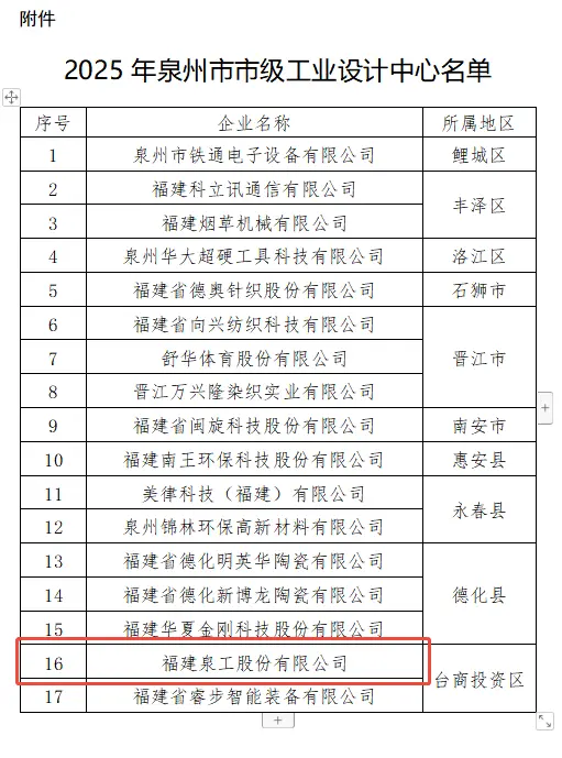 Quanzhou முனிசிபல் தொழில்துறை வடிவமைப்பு மையங்களின் அங்கீகாரத்திற்கான மேலாண்மை நடவடிக்கைகளின்படி, மதிப்பிடப்பட்ட நிறுவனங்கள் தொழில்துறை வடிவமைப்பு முதலீட்டின் விகிதம், காப்புரிமைகளின் எண்ணிக்கை, வடிவமைப்பு குழுவின் அளவு மற்றும் தொழில் பல்கலைக்கழக ஆராய்ச்சி ஒத்துழைப்பின் ஆழம் ஆகியவற்றின் அடிப்படையில் தரநிலைகளை முழுமையாக பூர்த்தி செய்ய வேண்டும், மேலும் குறிப்பிடத்தக்க தொழில்துறை ஆர்ப்பாட்டம் மற்றும் ஓட்டுநர் விளைவுகளைக் கொண்டிருக்க வேண்டும். சமீபத்திய ஆண்டுகளில், Quangong குழுமம் அதன் தொழில்துறை வடிவமைப்பு கண்டுபிடிப்புகளை தொடர்ந்து அதிகரித்து வருகிறது, பல முக்கியமான சர்வதேச மற்றும் உள்நாட்டு தொழில்துறை வடிவமைப்பு விருதுகளை வென்றுள்ளது, மேலும் 11 தேசிய மற்றும் தொழில்துறை தரநிலைகளை உருவாக்குவதில் முன்னணியில் உள்ளது அல்லது பங்கேற்கிறது.