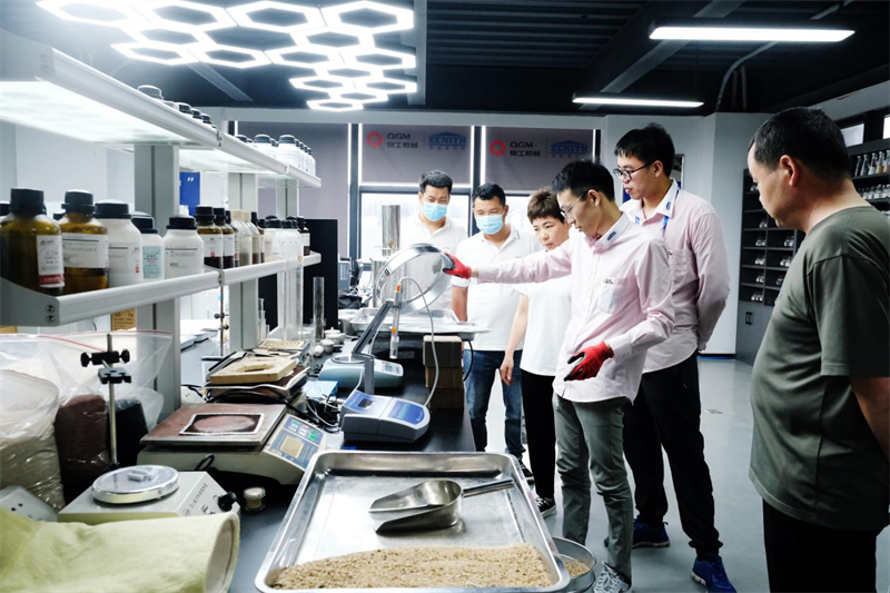 இந்த காட்சி குவாங்காங் ஆய்வக மையத்தில் தினமும் விளையாடுகிறது. செப்டம்பர் 2020 இல், "திடக்கழிவுகளால் சுற்றுச்சூழல் மாசுபாட்டைத் தடுப்பது மற்றும் கட்டுப்படுத்துவது குறித்த சீன மக்கள் குடியரசின் சட்டம்" திருத்தப்பட்டதிலிருந்து, குவாங்காங் தனது தினசரி R&D செயல்முறைகளில் "திடக்கழிவு குறைப்பு மற்றும் வளப் பயன்பாட்டை" இணைத்துள்ளது. கடந்த மூன்று ஆண்டுகளில், பல்வேறு பகுதிகள் மற்றும் கலவைகளில் இருந்து திடக்கழிவுகள் மீது செங்கல் தயாரிக்கும் சோதனைத் தரவுகளைத் தொடர்ந்து சேகரித்து, உள்நாட்டு மற்றும் வெளிநாட்டு வாடிக்கையாளர்களுக்கு ஏற்ப தயாரிக்கப்பட்ட செங்கல்/பிளாக் ஃபார்முலாக்களை வழங்குகிறது.