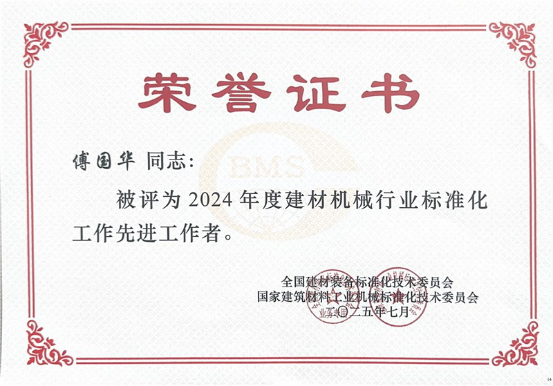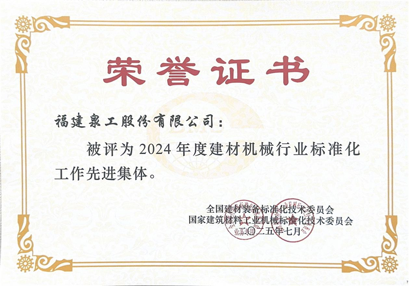 அதே நேரத்தில் நடைபெற்ற பாராட்டு அமர்வில், Quangong Machinery Co.,Ltd க்கு "2024 இல் கட்டுமானப் பொருட்கள் இயந்திரத் துறையில் தரநிலைப்படுத்தல் பணிகளில் மேம்பட்ட கூட்டு" என்ற பட்டம் வழங்கப்பட்டது, மேலும் நிறுவனத்தின் துணை பொது மேலாளர் Fu Guohua க்கு "Advanchine ஸ்டாண்டர்டைசேஷன் இன் வொர்க்கர்ஸ் பட்டம் வழங்கப்பட்டது. 2024 இல் தொழில்".