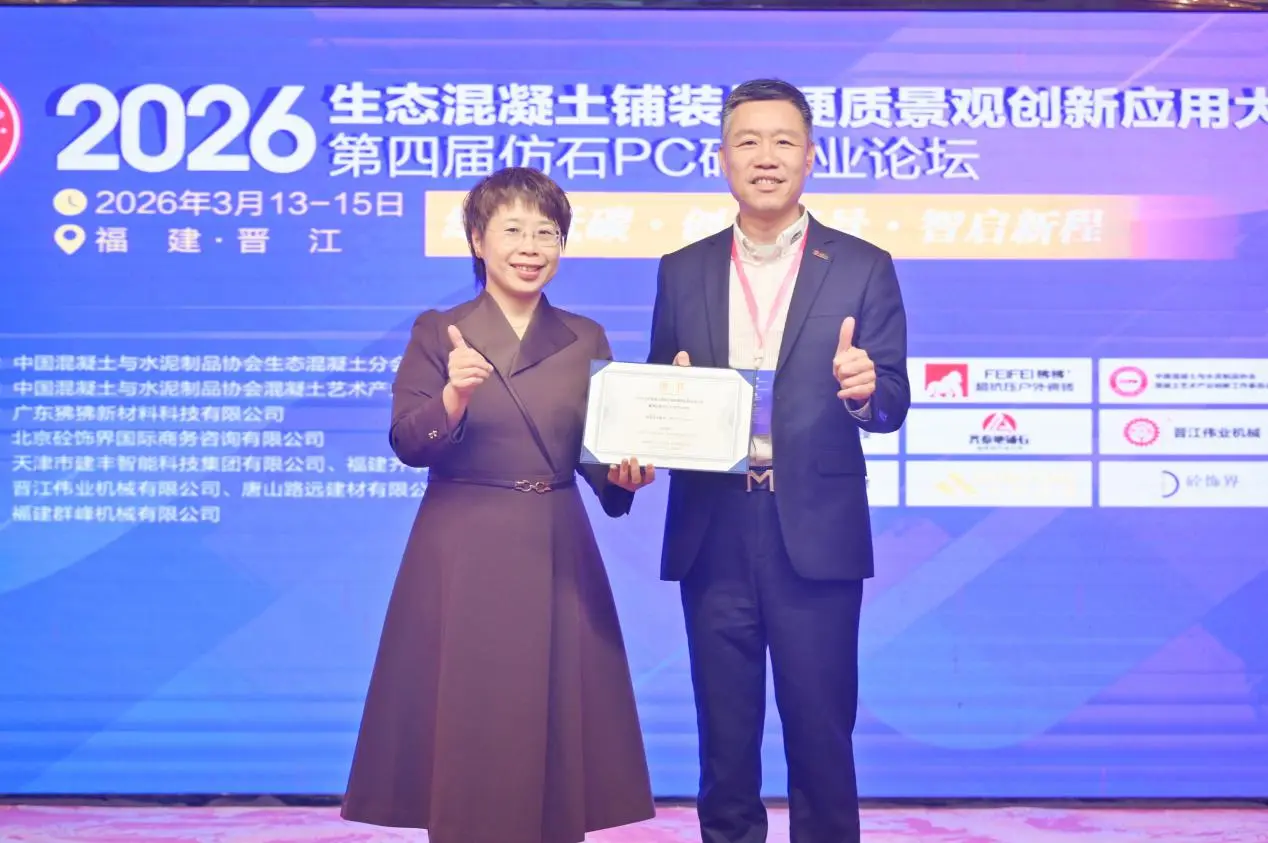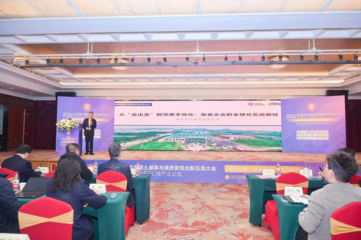 மார்ச் 13 முதல் 15 வரை, இமிடேஷன்-ஸ்டோன் பிசி பிரிக்ஸ் தொடர்பான 4வது தொழில் மன்றத்துடன் இணைந்து, சுற்றுச்சூழல் கான்கிரீட் பேவிங் மற்றும் ஹார்ட்ஸ்கேப்பின் புதுமையான பயன்பாடுகள் குறித்த 2026 மாநாடு, புஜியான் ஜின்ஜியாங்கில் நடைபெற்றது. "பசுமை மற்றும் குறைந்த கார்பன்: புதுமையான நிலப்பரப்புகள், புத்திசாலித்தனமாக ஒரு புதிய பாடத்திட்டத்தை பட்டியலிடுதல்" என்ற கருப்பொருளில் நடைபெற்ற இந்த மாநாட்டில், R&D, உற்பத்தி, வடிவமைப்பு, கட்டுமானம், சோதனை மற்றும் உபகரண உற்பத்தி உள்ளிட்ட துறைகளைச் சேர்ந்த வல்லுநர்கள், அறிஞர்கள் மற்றும் நிறுவனப் பிரதிநிதிகள் கலந்து கொண்டனர். அவர்கள் ஒன்றாக, சுற்றுச்சூழல் கான்கிரீட் நடைபாதை மற்றும் கடினத் தொழில்களுக்கான புதுமையான வளர்ச்சி பாதைகளை ஆராய்ந்தனர். புஜியன்குவாங்காங் மெஷினரி கோ., லிமிடெட்.இந்நிகழ்ச்சியில் கலந்து கொள்ள அழைக்கப்பட்டது, அங்கு நிறுவனத்தின் தொழில்நுட்ப சாதனைகள் மற்றும் கான்கிரீட் தயாரிப்பு உற்பத்தி உபகரணங்களின் மண்டலத்திற்குள் விரிவான அமைப்பு தீர்வுகளை வெளிப்படுத்த ஒரு கண்காட்சி சாவடியை நிறுவியது.
