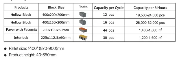 சாதாரண தொகுதிகள், அலங்கார தொகுதிகள் மற்றும் இன்சுலேடிங் தொகுதிகள் போன்ற பல செயல்பாட்டு வகைகளை உள்ளடக்கிய பல்வேறு வகையான ஹாலோ செங்கல் தயாரிப்புகளை இந்த உபகரணங்கள் உற்பத்தி செய்கின்றன. துளை வடிவங்களில் சதுர மற்றும் வட்ட துளைகள் அடங்கும், மேலும் இந்த ஏற்பாடு ஒற்றை-வரிசை, இரட்டை-வரிசை மற்றும் பல-வரிசை துளை கட்டமைப்புகளை அடைய முடியும். அச்சுகளை மாற்றுவதன் மூலம் அல்லது உபகரண அளவுருக்களை சரிசெய்வதன் மூலம், பல்வேறு வகையான செங்கல் தயாரிப்புகளை பல்வேறு சந்தை தேவைகளை பூர்த்தி செய்ய நெகிழ்வாக மாற்றலாம்.
