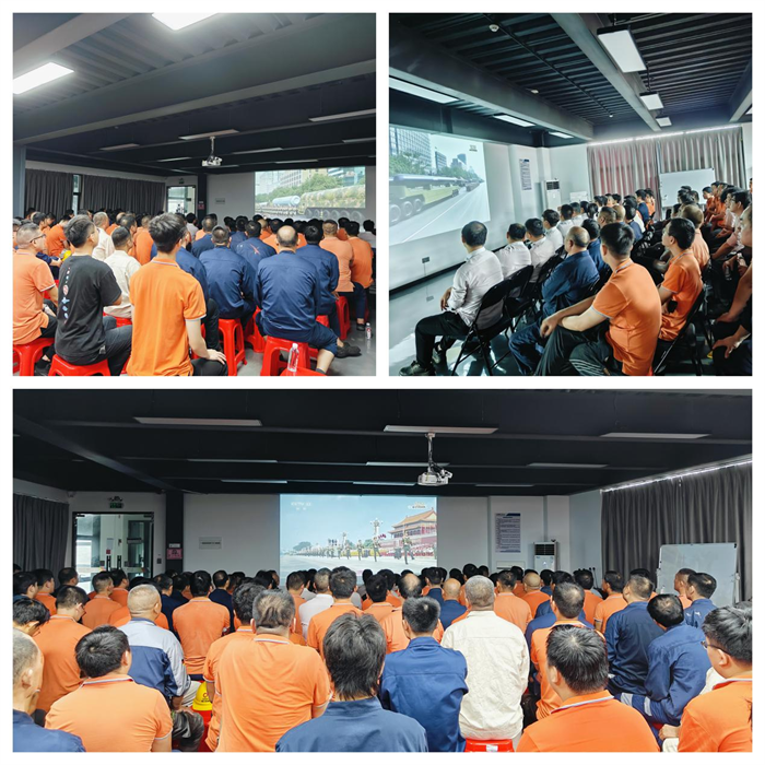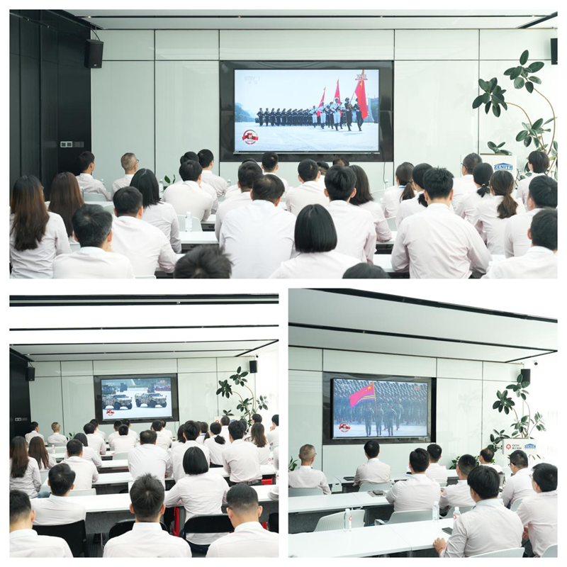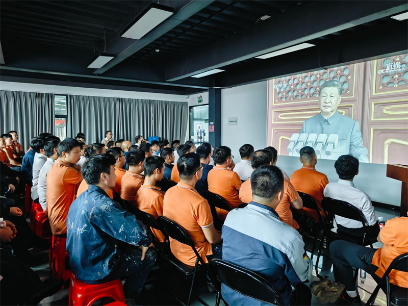 செப்டம்பர் 3 ஆம் தேதி காலை 9:00 மணியளவில், ஜப்பானிய ஆக்கிரமிப்பு மற்றும் உலக பாசிச எதிர்ப்புப் போருக்கு எதிரான சீன மக்கள் எதிர்ப்புப் போரின் வெற்றியின் 80 வது ஆண்டு நிறைவைக் குறிக்கும் மாபெரும் இராணுவ அணிவகுப்பு பெய்ஜிங்கில் நடைபெற்றது. Quangong Co., Ltd. இன் கட்சிக் கிளை தேசிய அழைப்புக்கு தீவிரமாகப் பதிலளித்தது மற்றும் அனைத்து ஊழியர்களையும் ஒரே நேரத்தில் நேரடி ஒளிபரப்பைக் காண ஏற்பாடு செய்தது, இந்த வரலாற்று தருணத்தை ஒன்றாகக் கண்டு, தாய்நாட்டின் வலிமையான இராணுவத்தின் நடத்தையை உணர்ந்தது மற்றும் ஜப்பானிய ஆக்கிரமிப்புக்கு எதிரான எதிர்ப்புப் போரின் சிறந்த உணர்வை ஊக்குவித்தது.