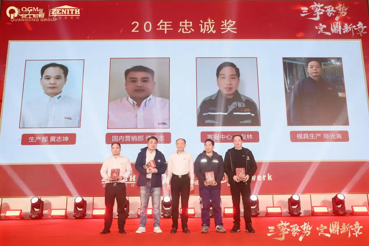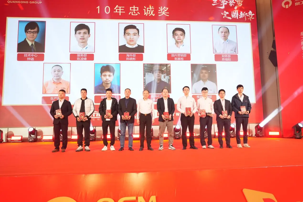 வருடாந்திர கூட்டத்தின் போது, ​​10-ஆண்டு, 20-ஆண்டு மற்றும் 30-ஆண்டு விசுவாச விருதுகளுக்கான மாபெரும் விருது விழாவும் நடைபெற்றது. குவாங்காங் மெஷினரி கோ., லிமிடெட் இன் நிலையான வளர்ச்சி மற்றும் அதன் நீடித்த பெருநிறுவன கலாச்சாரத்தின் உறுதியான அடித்தளத்தை முழுமையாக நிரூபித்து, நிறுவனத்துடன் கைகோர்த்து, ஒன்றாக வளர்ந்த ஊழியர்களின் குழு மேடைக்கு வந்தது.