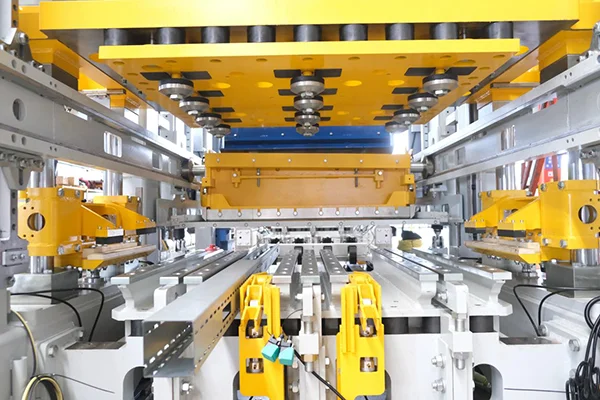 2தானியங்கி விரைவு அச்சு மாற்ற அமைப்பு ஜெனித்தின் தானியங்கி விரைவு அச்சு மாற்ற அமைப்பு பல சாதனங்களின் ஒருங்கிணைந்த செயல்பாட்டை அடிப்படையாகக் கொண்டது, இது அறிவார்ந்த, வேகமான மற்றும் துல்லியமான அச்சு மாற்றத்தை செயல்படுத்துகிறது. அச்சு பிரதான இயந்திரத்திற்கு அடுத்ததாக கொண்டு செல்லப்பட்டவுடன், அது ஒரு தூக்கும் அமைப்பு மூலம் அச்சு மாற்ற அலகு மீது வைக்கப்படுகிறது. கைமுறையாக கையாளுதல், பொருத்துதல் அல்லது பூட்டுதல் இல்லாமல் கணினி தானாகவே அச்சு மாற்ற செயல்முறையை நிறைவு செய்கிறது.