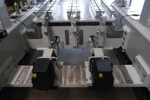 8ஃபேஸ் மிக்ஸ் யூனிட்டிற்கான ஹைட்ராலிக் தானியங்கி பூட்டுதல் ZN1200-2S இன் பிரதான இயந்திரத்திற்கும் முகம் கலவை அலகுக்கும் இடையிலான இணைப்பு மேம்பட்ட ஹைட்ராலிக் தானியங்கி பூட்டுதல் அமைப்பு மூலம் அடையப்படுகிறது. ஹைட்ராலிக் சிலிண்டர்கள், ஃபேஸ் மிக்ஸ் யூனிட்டை மெயின் மெஷினுடன் இறுக்கமாகப் பாதுகாக்க, பூட்டுதல் கூறுகளை இயக்குகின்றன. ஃபேஸ் மிக்ஸ் யூனிட்டைப் பிரிக்க வேண்டியிருக்கும் போது, சிஸ்டம் பூட்டை வெளியிடுகிறது, மேலும் ஒரு கியர் மோட்டார் ஃபேஸ் மிக்ஸ் யூனிட்டை அதன் தண்டவாளத்தில் நகர்த்தச் செய்கிறது.